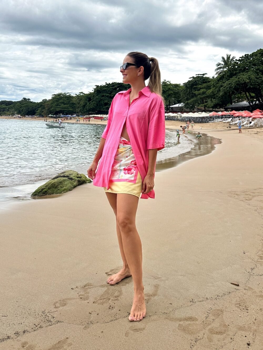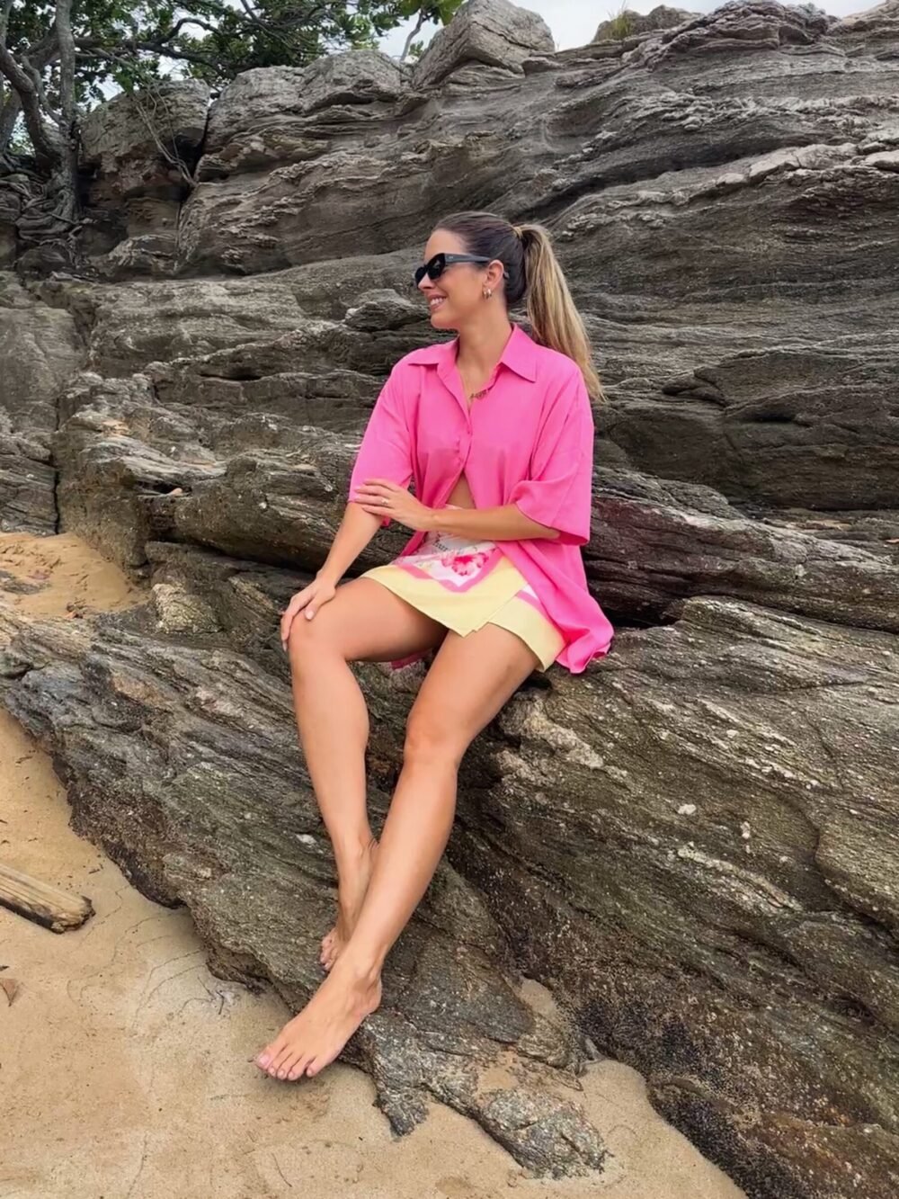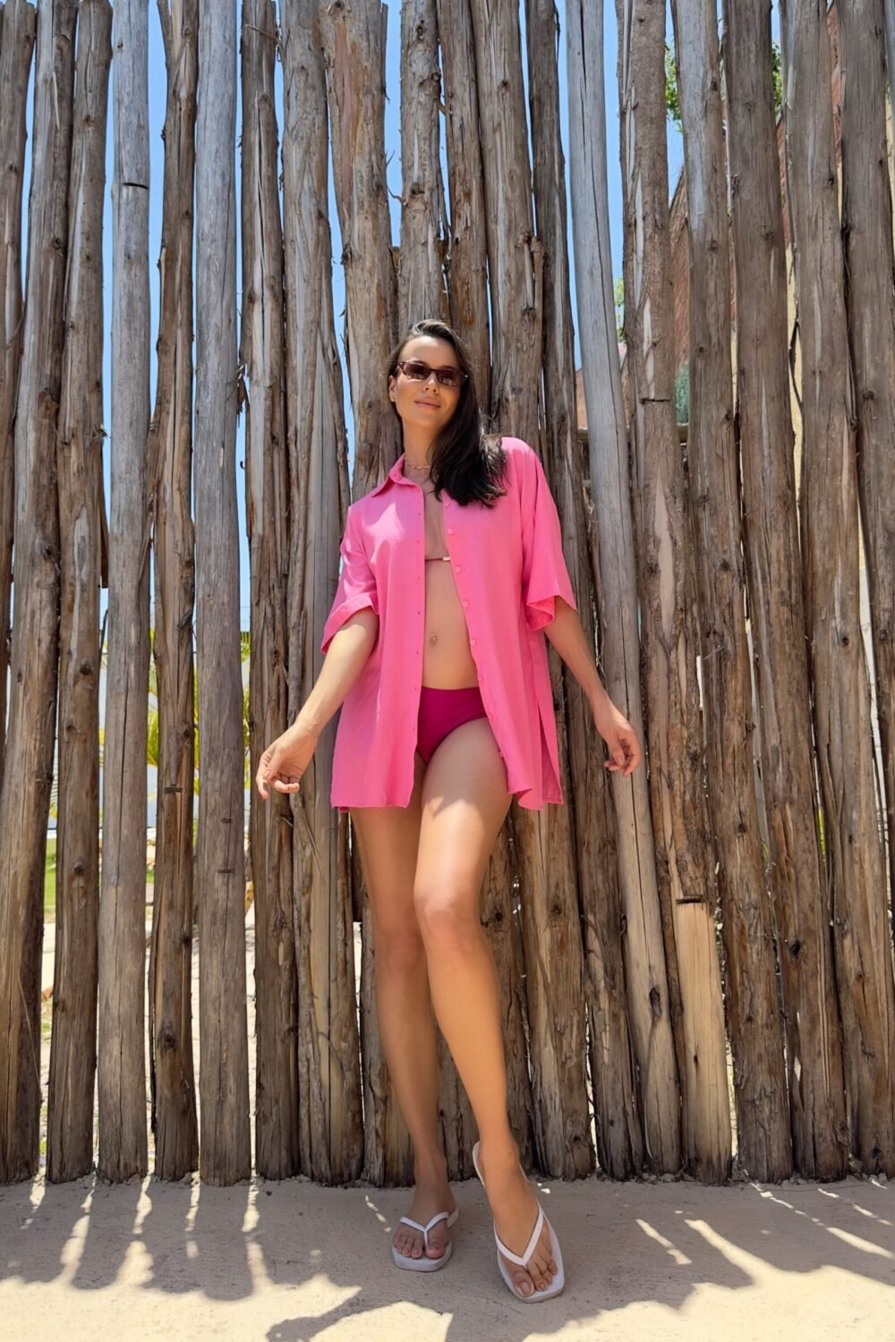 Camisa estilo oversized, manga curta, possui fenda nas laterais e abotoamento padrão no centro frente. Uma peça versátil para compor vários looks desde looks resortwear a looks casuais do dia-a-dia.