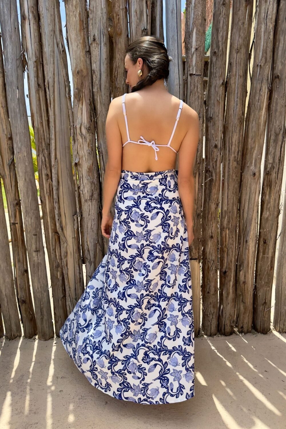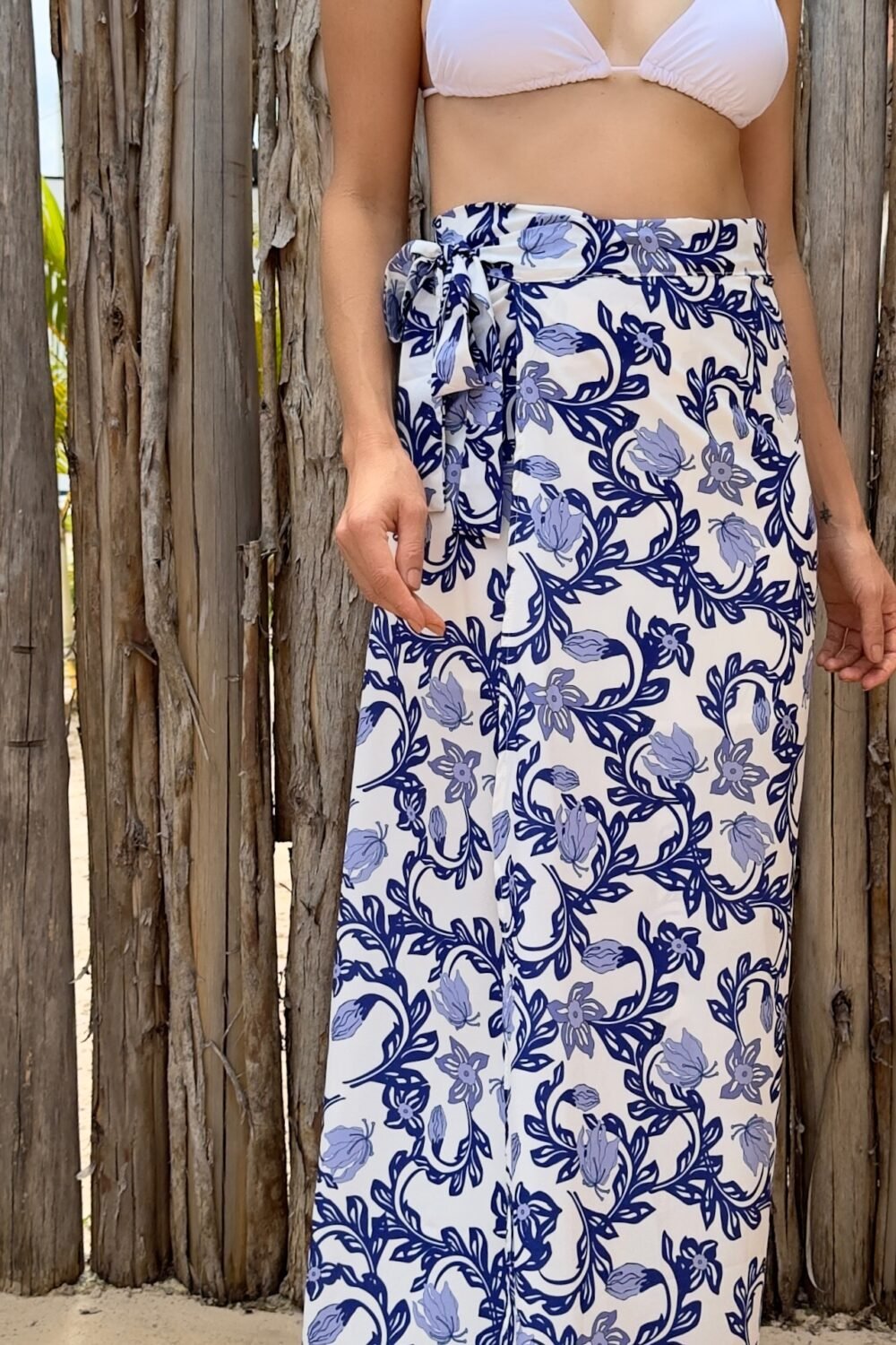 Saia Transpassada de amarrar, em tecido leve, confortável, com estampa exclusiva. A saia transpassada é uma peça descomplicada e muito versátil, pode ser usada desde looks praia/resort, a looks casuais do dia-a-dia, diurnos ou noturnos.