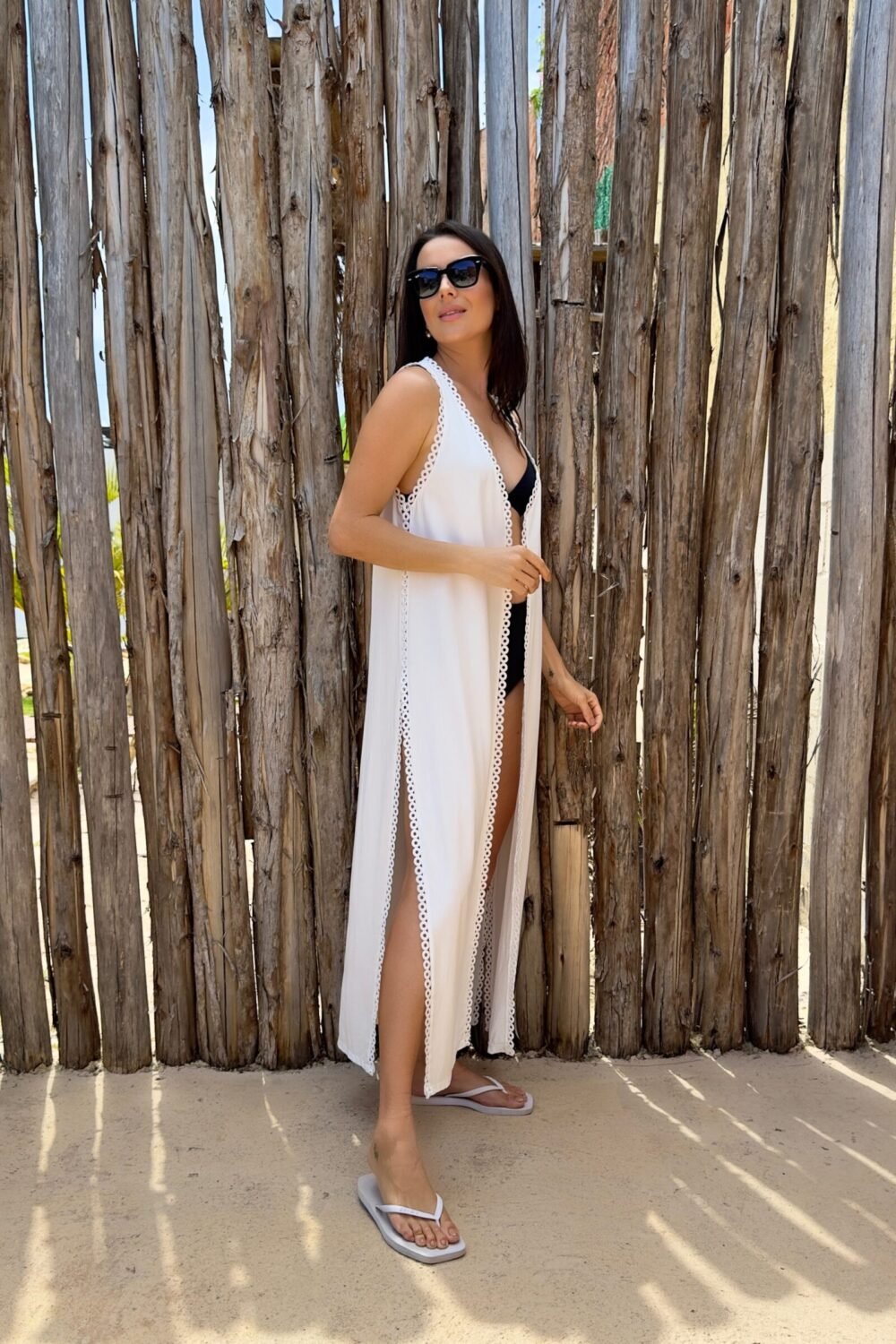Saída de praia confeccionada em Viscose Premuim, com detalhes em aviamento o que traz muita elegância para a peça.